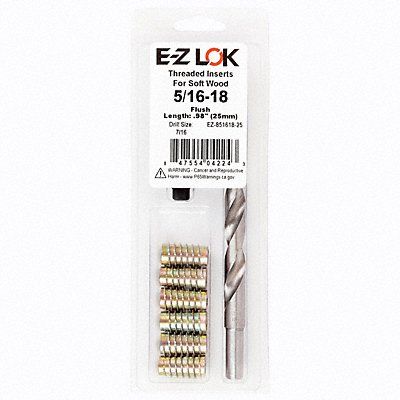 Threaded Insert for Soft Wood Insert Types Included Hex Drive Threaded Inserts Compatible Material Wood Drill Bit Sizes Included 7/16 in Insert Length 63/64 in Number of Inserts 6 Number of Pieces 8 Number of Sizes 1 System of Measurement Inch Thread Size 5/16 In.-18 Insert Outside Diameter 0.31 in