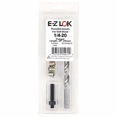 Threaded Insert for Soft Wood Insert Types Included Hex Drive Threaded Inserts Compatible Material Wood Drill Bit Sizes Included 23/64 in Insert Length 25/64 in Number of Inserts 10 Number of Pieces 12 Number of Sizes 1 System of Measurement Inch Thread Size 1/4 In.-20 Insert Outside Diameter 0.25 in