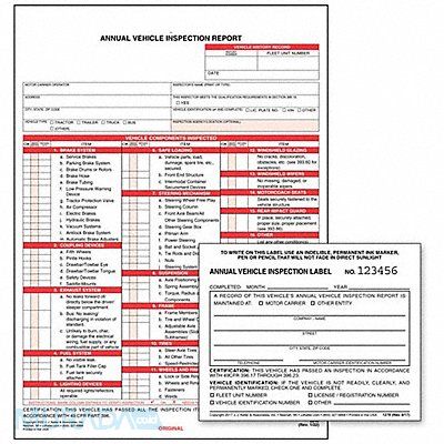 Annual Vehicle Inspection Report/Label Carbonless Size 8-1/2 x 11-3/4 in Number of Plies 3 Format Continuous w/Decal Language English
