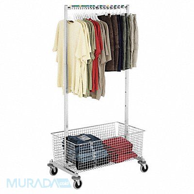 Mobile Garment Rack Adjustable Height (In.) 51 in to 69 in Depth (In.) 20 in Width (In.) 34 in Shelf Width (In.) 18 in Shelf Length (In.) 32 in Holds Up to 18 Garments Material Steel Chrome Finish Includes Wire Grid Bottom Basket Hang Bar