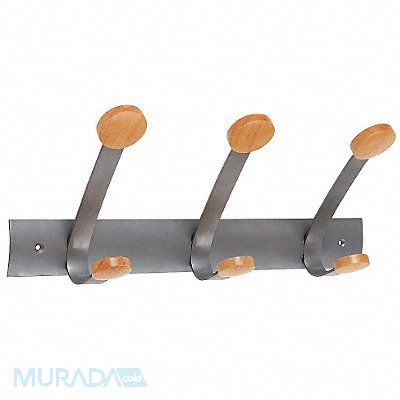 Coat Rack 3 Hook Height (In.) 10 1/2 in Width (In.) 24 1/8 in Holds Up to 15 garments Material Wood/Steel Color Brown/Silver