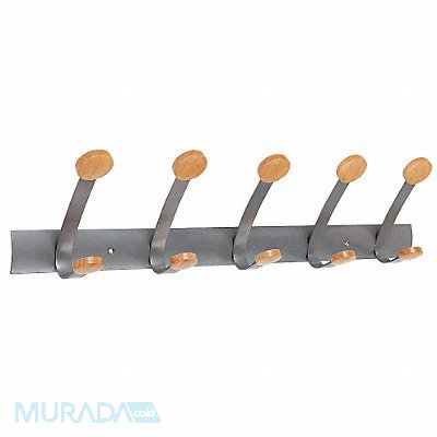 Coat Rack 5 Hook Height (In.) 10 1/2 in Width (In.) 24 1/8 in Holds Up to 24 garments Material Wood/Steel Color Brown/Silver