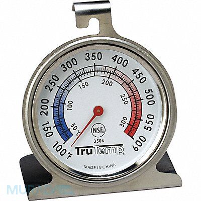 Oven Thermometer Food Service Thermometer Sub Category Oven Thermometer Oven Temp Range (F) 100 Degrees to 600 Degrees F Temp Range (C) 50 Degrees to 300 Degrees C Accuracy +/-5 Degrees F Dial Size 2 in Standards NSF Stem Material Stainless Steel Case Material Stainless Steel Lens Material Glass Display Analog Metal Detectable Yes Features Hanger Manufacturers Warranty Length 1 yr