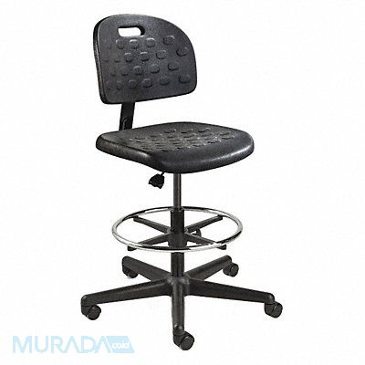 Drafting Chair Drafting Chair Back Color Family Black Back Material Family Plastic Seat Material Polyurethane Back Material Polyurethane Nominal Seat Height Range 22 in to 32 in Seat Color Black Weight Capacity 300 lb Partially Assembled Seat Height Min 42 in Seat Height Max 31 1/2 in Back Height 12 in Caster Type Hard Floor Overall Height 48 1/2 in Overall Width 27 in Overall Depth 27 in Seat Width 18 in Seat Depth 17 in Back Width 17 in Number of Casters 5
