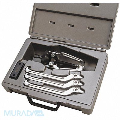 Puller Set Jaw Spread - Maximum 4 1/2 in Reach - Maximum 2 7/8 in Includes 2 Way Puller Head 3 Way Puller Head Plastic Storage Box Plus Three Long-Reach and Three Short-Reach Puller Jaws Jaw Sizes Included 2 7/8 in Jaw Spread - Minimum 1 in Number of Jaws 2 or 3 Number of Pieces 9 Yoke Types Included Three-Way Two-Way Features Components Can Be Assembled to Create Several Puller Versions