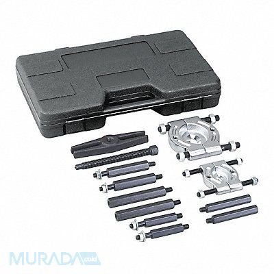 Puller Set Jaw Types Included Bar Pulling Capacity 5 ton Screw Size Various Includes 5 ft Push Puller 6 1/4 in Forcing Screw Bearing Splitter 2 in Max Spread Bearing Splitter 3in Max Spread Case Four Sets of Hex Push-Puller Legs Number of Jaws 0 Number of Pieces 13 Bearing Splitter Sizes Included 2 in 3 in Includes Push-Pullers Yes Application Pulling Jobs Compatible with Product Type Pulling Jobs