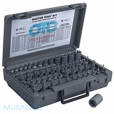 Socket Set Tip Size E10 E12 E14 E16 E18 E20 E24 E33 E4 E5 E6 E7 E8 T10 T15 T20 T25 T27 T30 T40 T45 T47 T50 T55 T6 T60 T70 T8 TR10 TR15 TR20 TR25 TR27 TR30 TR40 TR45 TR50 TR55 TR60 TR8 Tip Style Tamper Resistant Torx Torx Overall Length 12 in Drive Size 1/4 in 3/8 in 1/2 in Number of Pieces 53 Alloy Steel Black Oxide Torx Insulated Yes For Screw Type Torx Torx Plus