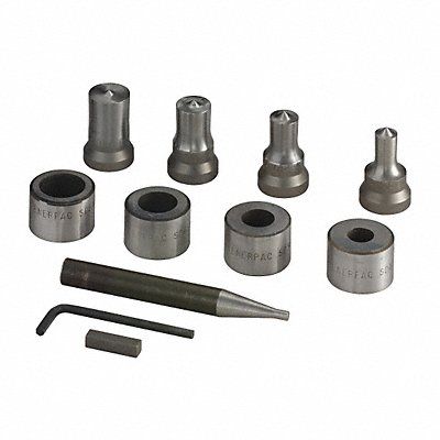 0.31 0.38 0.4 0.38 0.44 0.5 0.31 0.38 0.44 0.5 0.19 0.25 0.31 0.38 0.4 0.25 0.31 0.31 0.38 0.4 0.31 0.38 0.44 0.5 0.31 0.38 0.4 0.38 0.44 0.53 0.69 5/16 in 3/8 in 7/16 in 5/8 in 0.31 0.38 0.44 0.38 in 0.44 in 0.5 in Metric Punch and Die Set Capacity (Tons) 35 ton Working Pressure (PSI) 10 000 psi Hole Size (In.) 0.38-0.69 Bolt Size (In.) 5/16 in 3/8 in 7/16 in 5/8 in Includes SP35 SPD375 SPD438 SPD531 SPD688