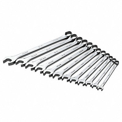 Combination Wrench Set Alloy Steel Chrome Number of Tools 12 Range of Head Sizes 8 mm to 19 mm Head Offset Angle 15 Degrees Offset Tray Metric 8 mm 9 mm 10 mm 11 mm 12 mm 13 mm 14 mm 15 mm 16 mm 17 mm 18 mm 19 mm Rounded Opening Angle (Deg.) 15 Degrees