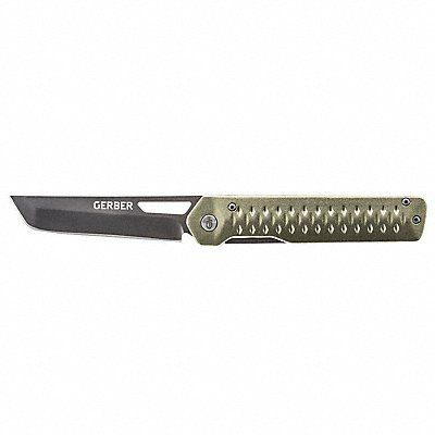Folding Knife Blade Edge Type Plain Blade Finish Black Oxide Blade Length 3 1/2 in Blade Material Steel Blade Type Utility Closed Length 4 1/2 in Features front flip and nail nick hole Coined aluminum mark scale stainless steel pile scale Two deployment options Grip Material Aluminum Stainless Steel Handle Color Green Handle Finish Anodized Handle Length 4 1/2 in Handle Material Aluminum Stainless Steel Handle Style Textured