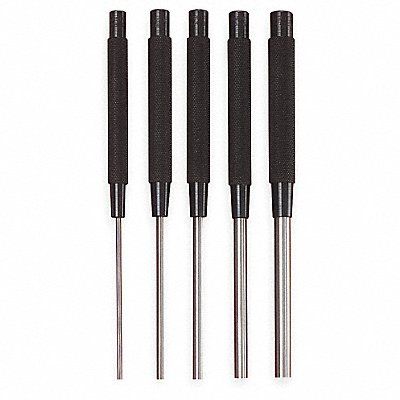 Drive Pin Punch Set Set Type Punch Set Types Included Drive Pin Punch Number of Pieces 5 Blade Tip Shape Straight Includes Handle No Includes Handguard No Material Applications Metal Plastic Wood Overall Length 8 in Includes 1/4 in 1/8 in 3/16 in 3/8 in 5/16 in Tip Size 1/8 in 3/16 in 1/4 in 5/16 in 3/8 in Material Steel Measurement Type SAE Container Type Case Punch Taper Length 3 1/2 in Tether Ready No