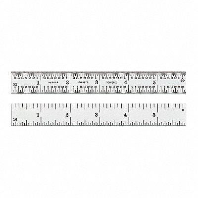 Ruler Construction Spring-Tempered Steel Graduation Type 4R Graduations 16ths 64ths 8ths Quick-Reading 32nds Length (In.) 6 in Width (In.) 3/4 in Satin Chrome Finish Markings Photo Engraved Black Painted Includes Redemption Card for Standard Letter of Certification