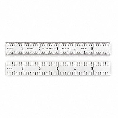 Steel Rule Spring Tempered Construction Hardened And Tempered Tool Steel Graduation Type 6R Graduations 50ths 50ths 10ths 10ths Length (In.) 6 in Length (mm) - Width (In.) 3/4 in Width (mm) - Satin Chrome Finish Markings C606R-6 Hook Type - Includes -