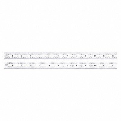 Ruler Construction Full Flexible Steel Graduation Type 5R Graduations 32nds 64ths Aircraft Quick-Reading 100ths Quick-Reading 10ths Length (In.) 18 in Width (In.) 3/4 in Satin Chrome Finish Markings Photo Engraved Black Painted