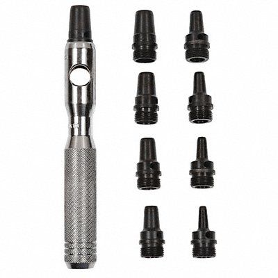 Hollow Punch Set Set Type Punch Set Types Included Hollow Punch Number of Pieces 10 Includes Handle Yes Includes Handguard No Material Applications Cloth Gasket Metal Leather Light Sheet Metal Vinyl Overall Length 3/4 in 1 in 4 3/4 in Includes 1/4 in 11/32 in 3/16 in 3/8 in 5/16 in 5/32 in 7/32 9/32 in Hollow Punch 1/8 in Tip Size 1/8 in 5/32 in 3/16 in 7/32 in 1/4 in 9/32 in 5/16 in 11/32 in 3/8 in Material Steel Measurement Type SAE Container Type Case