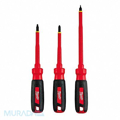 Tether Ready Insulated Screwdriver Set #0 #1 #2 #4 1/4 in 1/8 in 3/16 in 3/18 in 5/16 in ECX Phillips Slotted Ergonomic Number of Pieces 3 Yes ESD Safe No Non-Sparking No Measurement Type SAE Includes Slotted 1/4 in x 6 in Phillips #2x4 in ECX(TM) #1x4 in Corrosion Resistant Yes ASTM F1505-10 CSA IEC EN DIN 60900 NFPA70E OSHA UL Listed Tether Ready Yes Range of Shank Lengths 4 in to 6 in