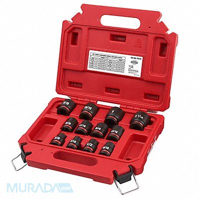 IMPACT SOCKET SET Steel Black Phosphate 1/2 in Impact Rated Yes Socket Depth Standard Socket Shape 6-Point Includes Standard Sockets Yes Standard Socket Style/Size 1 1/16 in 1 in 1/2 in 11/16 in 13/16 in 15/16 in 3/4 in 5/8 in 7/16 in 7/8 in 9/16 in Standard 6-Point 3/8 in Standard Socket Count/Style (12) 6-Point Includes Deep Sockets No Deep Socket Count/Style (12) 6-Point Includes Flex Sockets No Drive Type Impact