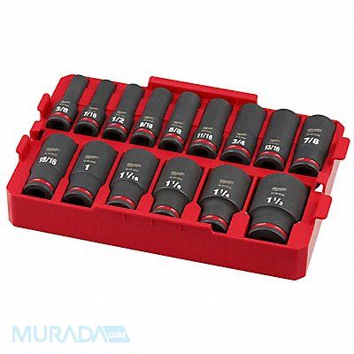 Socket Set Standard Socket Count/Style 0 Deep Socket Count/Style (15) 6-Point Deep Socket Style/Size 15 Deep 6-Point 11/16 in 1-1/16 in 1-1/2 in 1-1/4 in 1-1/8 in 13/16 in 15/16 in 3/4 in 5/8 in 7/16 1/2 in 7/8 in 9/16 in 1 in 3/8 in Impact Drive Size 1/2 in SAE 6-Point Chrome