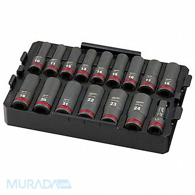 Socket Set Standard Socket Count/Style 0 Deep Socket Count/Style (15) 6-Point Deep Socket Style/Size 15 Deep and 1 Impact 6-Point 10 mm 11 mm 12 mm 13 mm 14 mm 15 mm 16 mm 17 mm 18 mm 19 mm 20 mm 21 mm 22 mm 23 mm 24 mm Impact Drive Size 1/2 in Metric SAE 6-Point Chrome