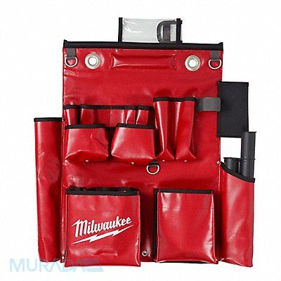 Tool Apron Color Red Features 2 Durable Nickel Plated Brass Eyelets Magnets Hold Sockets Puncture Resistant Knife Pockets Includes (3) D-Rings Machine Washable No Material Vinyl Number of Pockets 18 Overall Length 18 in Overall Width 23 5/8 in Padded No Primary Application Electrician Style Aerial Tool Thickness 3 47/50 in Tool Holder Type Multi-Sized Auger Waterproof Yes