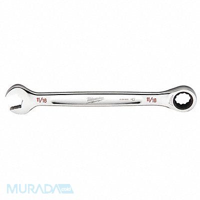 Ratcheting Combination Wrench Chrome Vanadium Steel Chrome Head Size 11/16 in Overall Length 9 1/8 in Head Offset Angle 0 Degrees Opening Angle (Deg.) 0 Degrees Standard Head Thickness 11/16 in SAE Rounded
