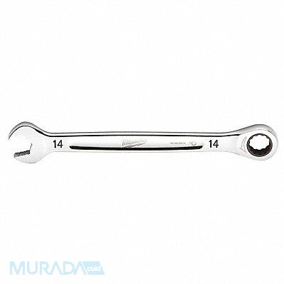 Ratcheting Combination Wrench Chrome Vanadium Steel Chrome Head Size 14 mm Overall Length 7 3/4 in Head Offset Angle 0 Degrees Opening Angle (Deg.) 0 Degrees Standard Head Thickness 14 mm Metric Rounded