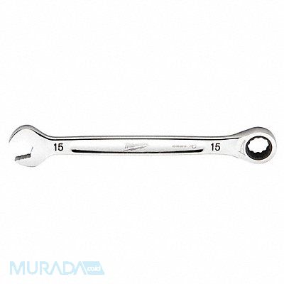 Ratcheting Combination Wrench Chrome Vanadium Steel Chrome Head Size 15 mm Overall Length 8 1/8 in Head Offset Angle 0 Degrees Opening Angle (Deg.) 0 Degrees Standard Head Thickness 15 mm Metric Rounded