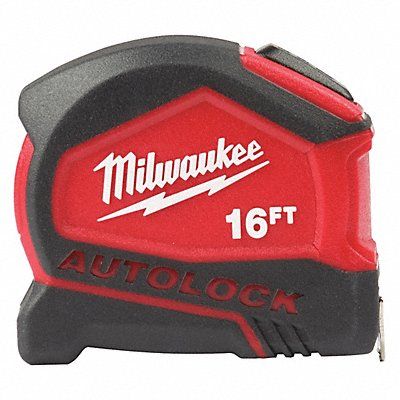 Tape Measures Tape Measure SAE Blade Length 16 ft Blade Width 27 mm Graduation Type in/ft/Fractional Graduations 1/16 in Blade Material Steel Tip Style Folding Hook Zero Point Case Type Closed Case Material ABS Plastic Belt Clip Yes Blade Color Yellow/White Case Color Black Red Blade Coating Nylon Lock Type Push Button Rewind Type Automatic Standout 9 ft Stud Markings Yes Features 5-Point Reinforced Frame