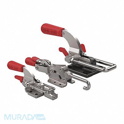Locking Latch Clamp Base Mounting Style Flange Handle Orientation Horizontal Includes Locking Handle Yes Holding Capacity - Maximum 360 lbf Hook Adjustment - Maximum 0.49 in Drawing Movement Without Thumb Control 1.17 in Includes Latch Plate Yes Requires Articulation Yes Hook Type Horizontal U Body Material Steel Exerted Force Applied Force - Pulling 27 1 Exerted Force Applied Force - Pushing 27 1 Handle Color Red