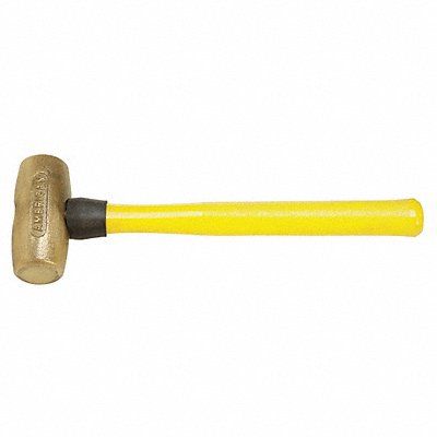 Brass Mallet Hammer Type Sledge Hammer Non-Sparking Yes Handle Material Fiberglass Head Material Brass Head Weight 4 lb Face Diameter 1 1/2 in Overall Length 14 in Handle Length 16 in Grip Style Textured Face Shape Round Dead Blow Hammer No Tether Ready No Replaceable Handle No Double Faced Yes Face Material Brass Features Should be Used on Surfaces that can Withstand Marring or on Surfaces that will Require Further Machining Grip Material Fiberglass Handle Color Yellow