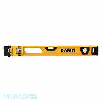 I-Beam Level Frame Material Aluminum Length 24 in Nonmagnetic Top Read No Total Number of Vials 3 Number of Plumb Vials 2 Number of Level Vials 1 Number of 30 Degree Vials 0 Number of 45 Degree Vials 0 Lighted Vials No Number of V-Grooves 0 Accuracy 0.0005 in Vial Type Block Vial Material High Impact Acrylic Number of Magnets 0 Magnet Type None Color Yellow Features Center Vial Shock Resistant Matte Finish