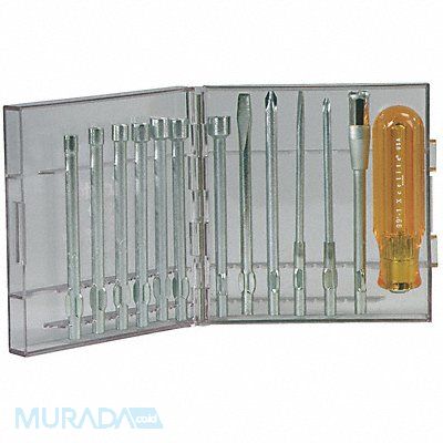 Precision Screwdriver Set Tip Size 3/16 7/32 1/4 9/32 5/16 11/32 3/8 in Nut Drivers 3/16 and 1/4 in Slotted #1 and #2Phillips Screwdrivers Tip Style Assorted Shank Material Steel
