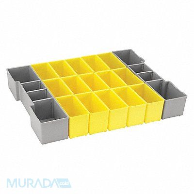 Storage Box Bin Cups Color Gray Yellow Compatible with Product Type Bits Blades Fasteners Hand Tools Features 32 Compartments For Use With Bosch Transport System Includes Organizer Material Plastic Overall Depth 12-3/4 in Overall Length 12-3/4 in Overall Width 16-1/4 in