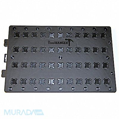 Tool Hanger Board Color Black Material Plastic Mounting Location Wall Number of Hanger Slots 6 Overall Depth 1 in Overall Length 18 in Overall Width 11 1/2 in Total Load Capacity 50 lb