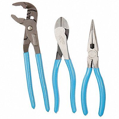 Plier Set ESD-Safe No Insulated No Number of Pliers 3 Plier Types Diagonal Long Nose Tongue Groove Pliers Included 7 1/2 in Long Nose 8 in High Leverage Diagonal Cutter 9 1/2 in Tongue and Groove Jaw Opening Type Manual Grip Style Standard Cushion Features Channellock(R) Blue Comfort Grips Rust Protection Finish Electronic Coating Handle Color Blue Handle Style Dipped