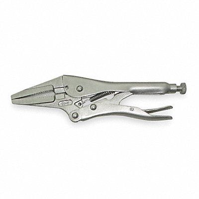 Locking Plier Plier Type Locking Pliers Jaw Shape Long Nose Handle Style Standard Handle Opening Type Quick Release Overall Length 9 in Maximum Jaw Opening 2 3/4 in Jaw Length 2 1/4 in Includes Wire Cutter Yes Tip Thickness 14/25 in Grip Style Plain Tether Ready No Additional Tool Functions Wire Cutter Non-Sparking No Adjustment Mechanism Locking Adjusting Finish Nickel Plated Jaw Thickness 1/2 in