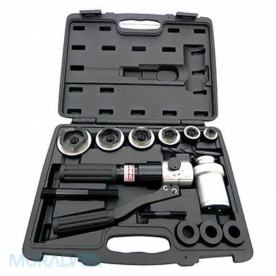 Hydraulic Punch Driver Set Number of Pieces 13 Capacity 11 ga Steel Conduit and Pipe Size 1/2 in to 2 in Workpiece Material Steel Driver Angle 360 Degrees Includes (6) Hydraulic Punch Dies (3) Adaptors (2) Power Screws Drill Bit Carrying Case