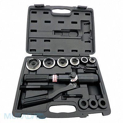 Hydraulic Punch Driver Set Number of Pieces 13 Capacity 11 ga Steel Conduit and Pipe Size 1/2 in to 2 in Workpiece Material Steel Includes (6) Hydraulic Punch Dies (3) Adaptors (2) Power Screws Drill Bit Carrying Case