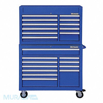Tool Chest and Cabinet Combination Heavy Duty Powder Coated Blue 42 in W x 19 in D x 66 3/4 in H Body Color Blue Body Finish Powder Coated Body Gauge 20 ga Body Material Steel