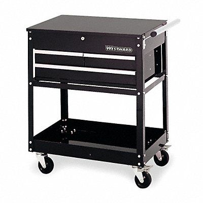 Tool Utility Cart Standard Duty Width 30 in Depth 20 in Height 31 in Number of Drawers 3 Color Black Drawer Color Black Drawer Capacity 88 lb Drawer Slides Ball Bearing Finish Gloss Storage Capacity 11 000 cu in Load Rating 250 lb Caster Size 4 in x 1-1/4 in Number of Shelves 1 Material Steel Gauge Cover 16 Tray 18 Legs 14 Drawers 19 Work Surface Material Steel Caster Wheel Material Phenolic Caster Type (2) Swivel (2) Locking Swivel Locking System Keyed