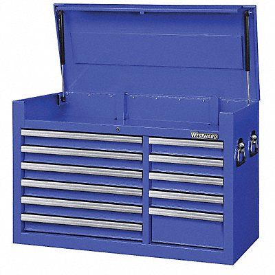 Top Chest Body Color Blue Body Finish Powder Coated Body Gauge 20 ga Body Material Steel Drawer Color Blue Drawer Finish Powder Coated Drawer Gauge 22 ga Drawer Liner Material Polyethylene Foam Drawer Material Steel Drawer Range 11 to 15 Drawer Slide Features Fully Extending Drawer Slide Function Fully Extended Ball Bearing Drawer Slide Type Ball Bearing Duty Rating Light Duty Features Aluminum Drawer Pulls Gas Lift Lid Body Finish/Color Powder Coated Blue