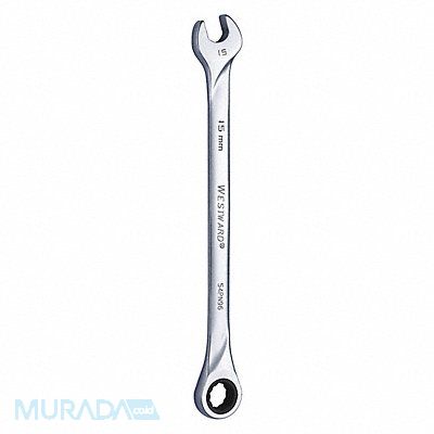 Ratcheting Wrench Alloy Steel Chrome Head Size 15 mm Overall Length 9 3/4 in Head Offset Angle 0 Degrees Standard Head Thickness 3/8 in Metric Rounded