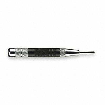 Automatic Center Punch Automatic Yes Punch Type Center Punch Tip Type Point Shank Shape Round Shank Diameter 5/8 in Grip Style Knurled Hole Diameter Not Applicable Overall Length 6 in Container Type Box Material Applications Metal Plastic Wood Includes Striking Cap No Includes Handguard No Taper Length 1 in Adjustable Blow Force Yes Features Single Hand Operation Finish Black Oxide Material Steel W/Carbide Point
