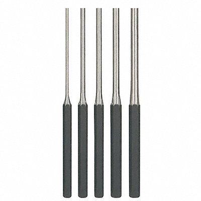 Drive Pin Punch Set Set Type Punch Set Types Included Length Pin Punch Number of Pieces 5 Blade Tip Shape Straight Blade Width 1/8 in 3/16 in 1/4 in 5/16 in 3/8 in Includes Handle No Chisel Type Length Pin Punch Includes Handguard No Material Applications For Softer Metal Wood Includes 1/4 x 8 in 1/8 x 8 in 3/16 x 8 in 3/8 x 8 in 5/16 x 8 in Tip Size 1/8 in 3/16 in 1/4 in 5/16 in 3/8 in Material Steel Measurement Type SAE Container Type Pouch Tether Ready No
