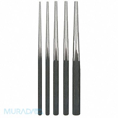 Drift Punch Set Set Type Punch Set Types Included Drift Punch Number of Pieces 5 Blade Tip Shape Straight Includes Handle No Chisel Type Drift Punch Includes Handguard No Material Applications For Softer Metal Wood Includes 1/45/8 1/83/8 10 3/161/2 5/16 7/321/2 Tip Size 1/8 in 3/16 in 7/32 in 1/4 in 5/16 in Material Steel Measurement Type SAE Container Type Pouch Tether Ready No Grip Style Plain