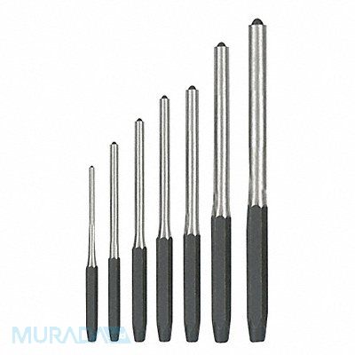 Roll Pin Punch Set Set Type Punch Set Types Included Roll Pin Punch Number of Pieces 7 Blade Tip Shape Straight Includes Handle No Chisel Type Roll Pin Punch Includes Handguard No Material Applications For Softer Metal Wood Includes 1/161/4 1/4 1/47/16 1/85/16 3-3/4 3/167/16 3/325/16 4 1/4 4 3/4 5 1/4 5 7/16 5/16 5/323/8 6 7/16 6 7/8 Tip Size 1/16 in 3/32 in 1/8 in 5/32 in 3/16 in 1/4 in 5/16 in Material Steel Measurement Type SAE Container Type Pouch