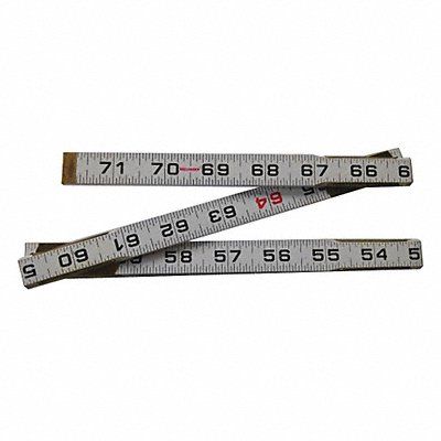 Two Way Reading Folding Rule Construction Wood with Brass Slide Strike Plates Brass Plated End Caps Riveted Brass Lock Joints Graduation Type Standard Graduations Feet Inches and 1/16 in On Both Sides and Edges Length (In.) 72 in Length (mm) 1 800 mm Width (In.) 5/8 in Width (mm) 15.9 mm Abrasive Resistant Epoxy Finish Markings Embedded Markings Flat Inside Lie Close to The Work Read Left to Right or Right to Left 16 in Stud Centers In Red