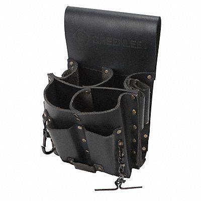 Tool Pouch Attachment Type Belt Slot Belt Width 3 in Closure Type Open Top Color Black Compatible with Product Type Heavy-Duty Tape Measure Tape Chain Features Heavy Duty Leacher Pouch with Large Divided Main Pocket Area Designed for Easy Storage and Tool Access Washer Rivets for Extra Strength For Maximum Belt Width 3 in Material Leather Number of Outside Pockets 8 Number of Pockets 8 Overall Depth 7 in Overall Height 10 1/2 in Overall Width 6 in Style Tool Pouch
