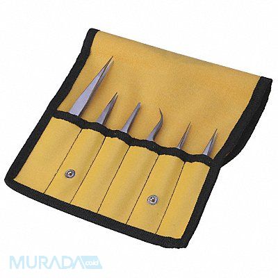 Titanium Tweezers Set Type 6 Pc Point Type Straight and Curved Length 4 1/2 4 3/4 5 In Material Titanium Resists Corrosion Application Precision Assembly