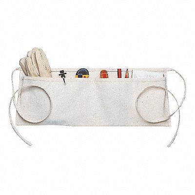 Tool Apron Color White Features 2 Large Pockets for Nails Screws Tools Etc. Double Stitched for Extra Strength One Size Fits Most Material Canvas Maximum Waist Size 50 in Minimum Waist Size 29 in Number of Pockets 2 Overall Length 7 1/2 in Overall Width 18 in Padded No Pocket Dimensions 18 in W x 7 1/2 in H Primary Application General Purpose Style Waist Waist Size 29 to 50 in